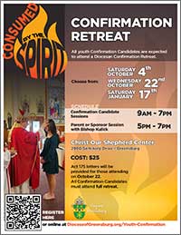 We desire that these retreats allow a chance for our young people to encounter Christ, and experience transformative moments. Attending a Confirmation retreat is about learning the meaning of Confirmation and discovering God’s unconditional love and the importance of entering a relationship with Him.